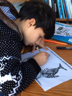 Part of the annual Global Game Jam. Tutoring school children how to draw their own game characters.